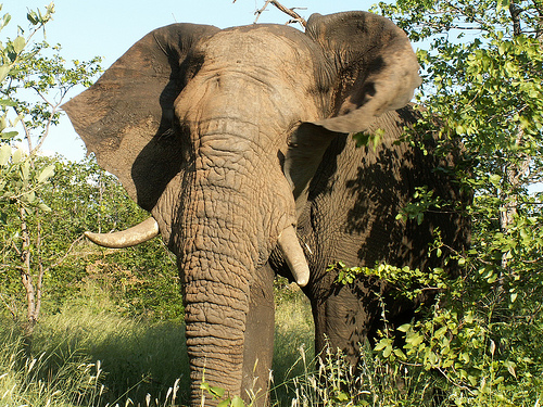 C’est la journée des éléphants : cela commence au point d’eau dès le matin où une famille vient boire, se baigner. Nous surprenons ensuite un énorme mâle !