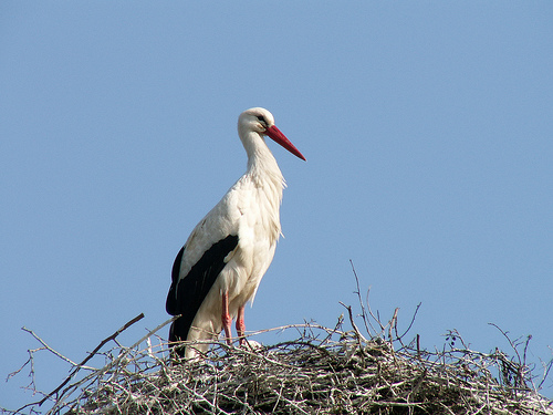 Il y a toujours beaucoup d’oiseaux à Sainte-Croix – pélicans, cormorans, hérons, grues – mais en cette saison, on remarque surtout les cigognes qui nichent sur les cheminées et les poteaux installés pour elles.