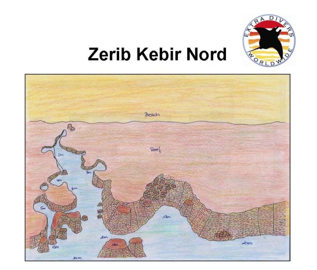 Aprés une virée matinale sur le house reef, nous partons avec le club Extra Divers sur le spot de Zebir Kebir North à 20 minutes de l’hôtel en minibus. Après un briefing sur le spot avec 2 autres binômes de snorkelers, c’est parti pour 1h de découverte le long du récif : il s’agit de quitter la plage par un chenal naturel, puis de longer le récif outside en explorant les canyons qui le creusent. Il y a un peu de courant et des vagues déferlent sur les hauts fonds. L’eau est remuée et la visibilité est parfois limitée.