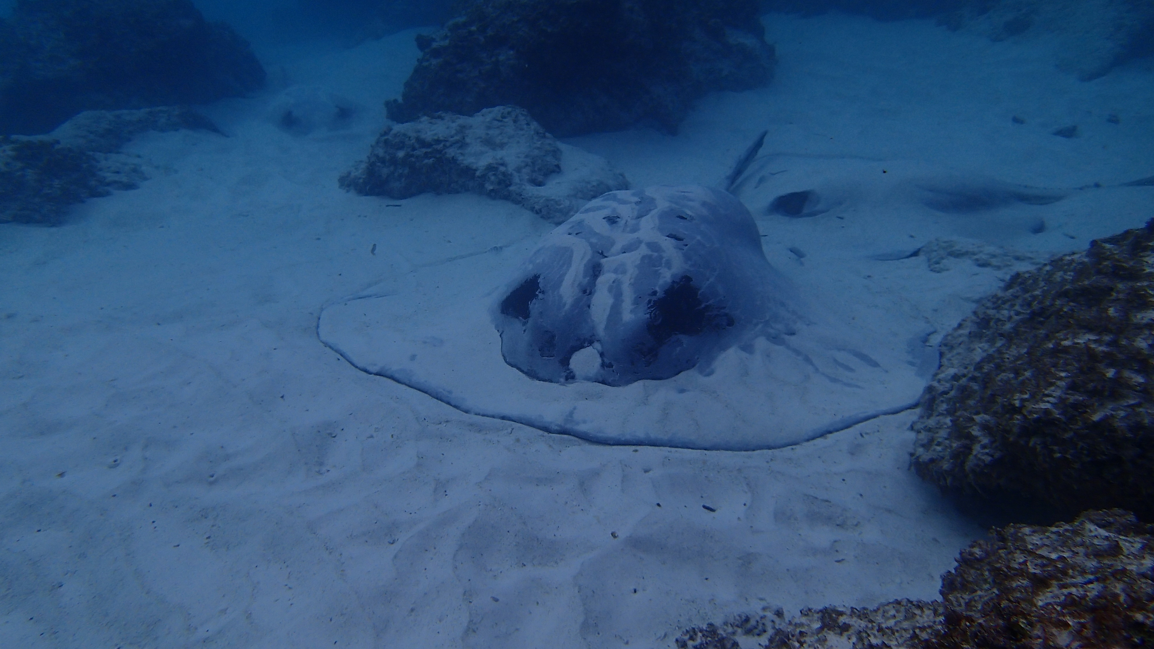 Le fond est sableux jusqu’à Roca Daniel et il est par endroit tapissé de raies, dont certaines énormes.