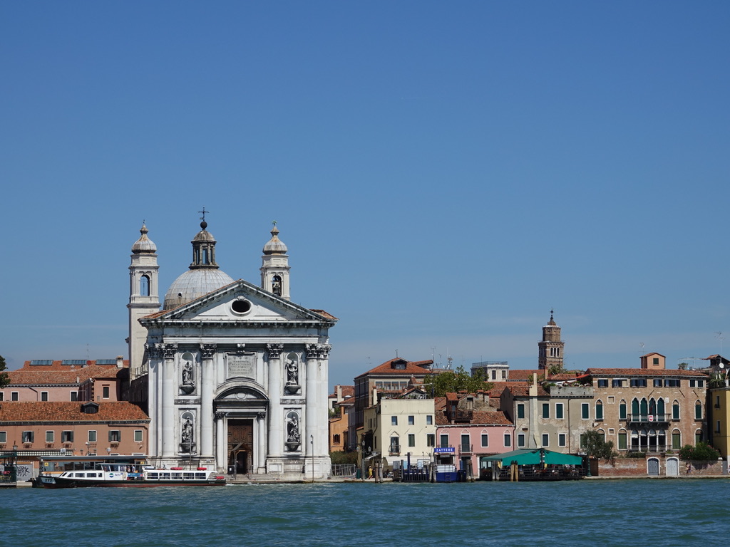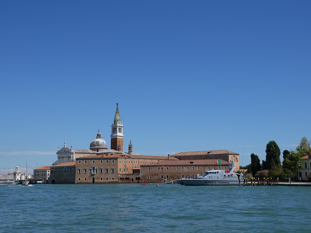 La chaleur devient intense. Il est temps de prendre un vaporetto, la ligne 2 moins fréquentée que la ligne 1, pour traverser le canal de la Giudecca. Nous sommes moins d’une dizaine à descendre du bateau sur l’île de San Giorgio, la visite va être tranquille.