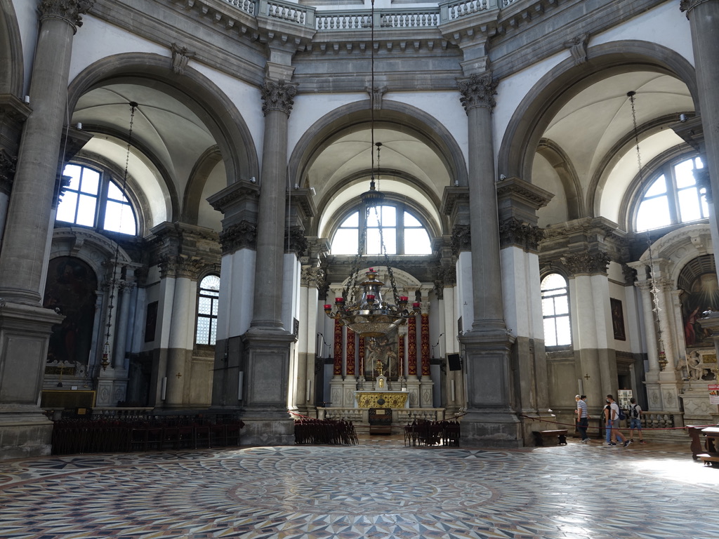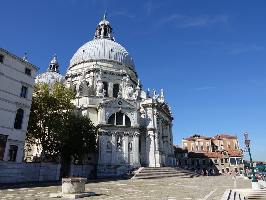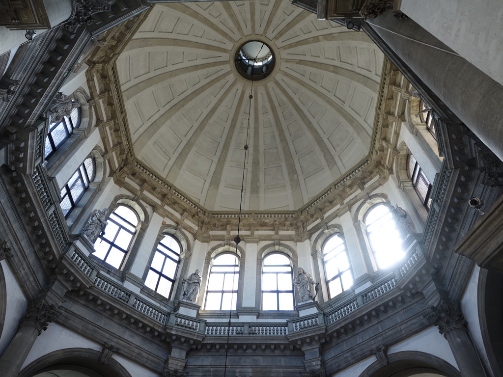Elle m’attire irrestiblement depuis notre arrivée et je ne suis pas déçue. Le plan octogonal à double dôme de l’architecte Longhena était révolutionnaire pour le XVII ème siècle. L’extérieur en pierre d’Istrie est orné de 125 statues (bien avant l’oeuvre du Bernin à Rome). Son escalier est juste monumental.