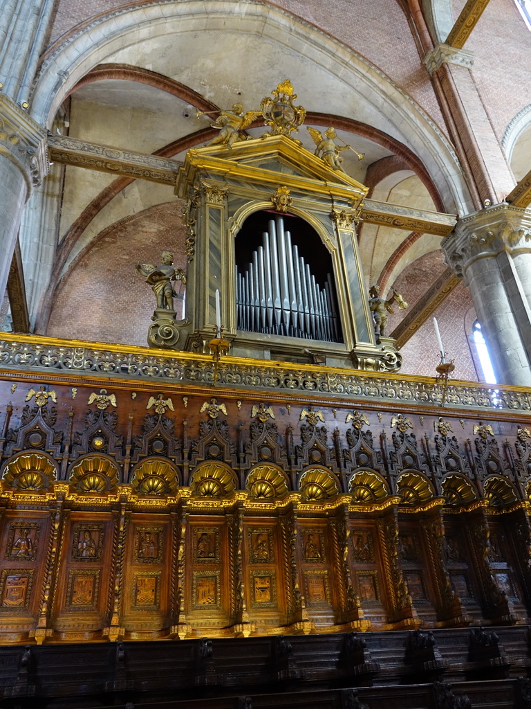 Le choeur au centre de l’église est tout en bois sculpté et orné de toiles de Bellini et de Titien.