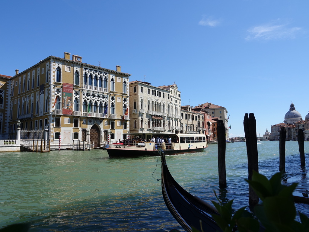 Le programme du jour est dense, aussi ai-je prévu de prendre un ticket de vaporetto à la journée (acheté au distributeur automatique de l’arrêt San Zacharia – 20€). Nous allons faire des sauts de puces le long du grand canal, profitant pour admirer encore une fois les palais.