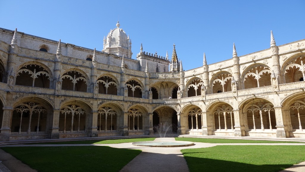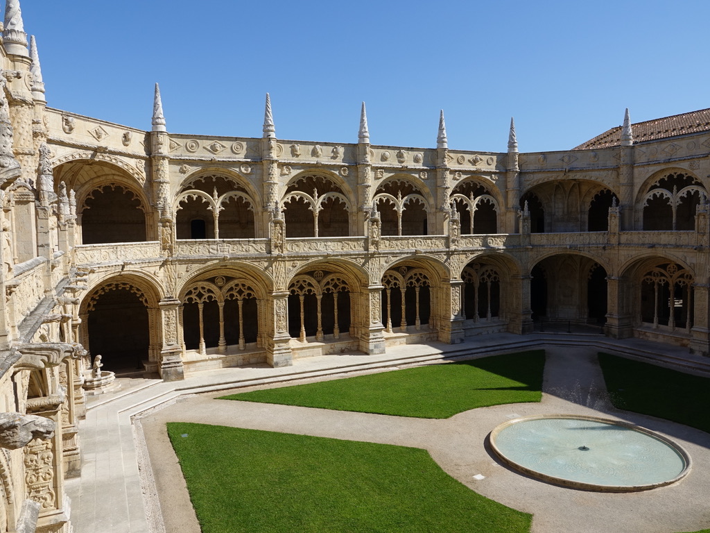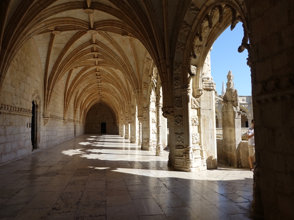 Dans le cloître de style manuélin, les colonnes couleur miel sont sculptées de feuilles, d’animaux exotiques, d’instruments de navigation. Nous avons visité le monastère dès l’ouverture et nous étions moins d’une dizaine, quelle tranquillité !