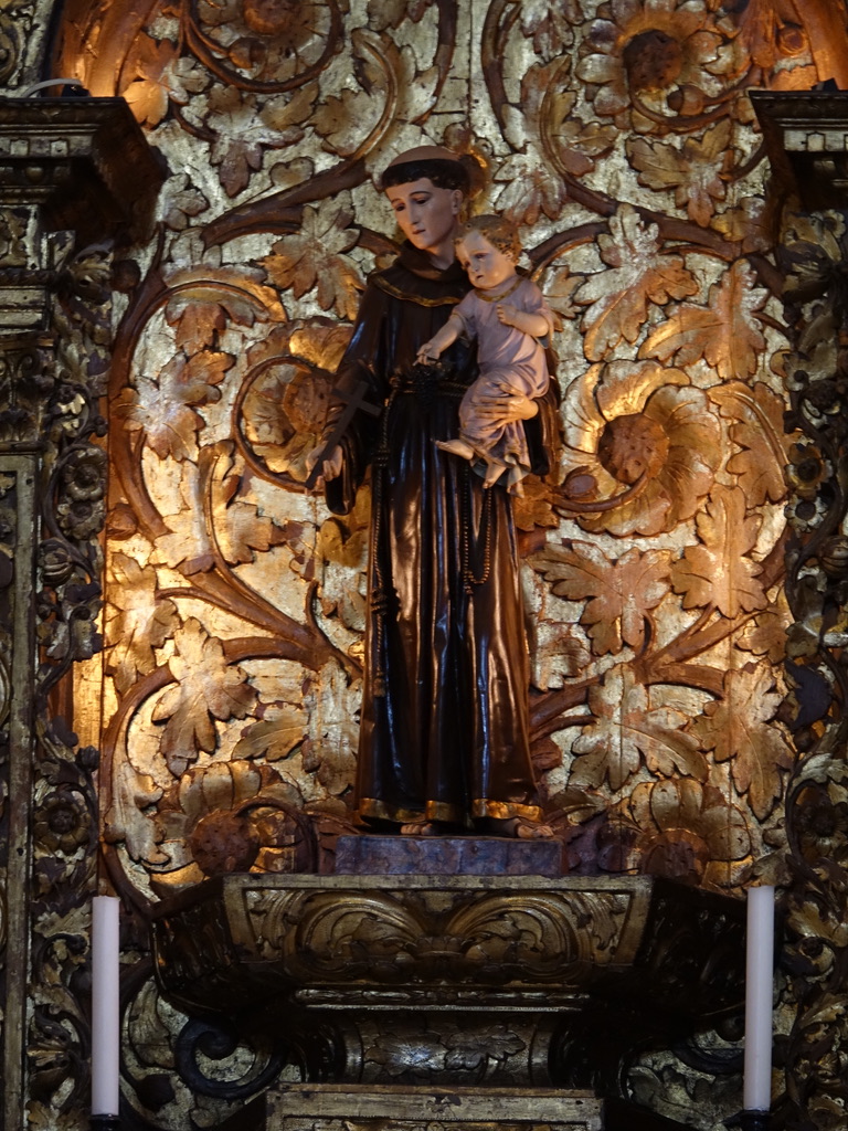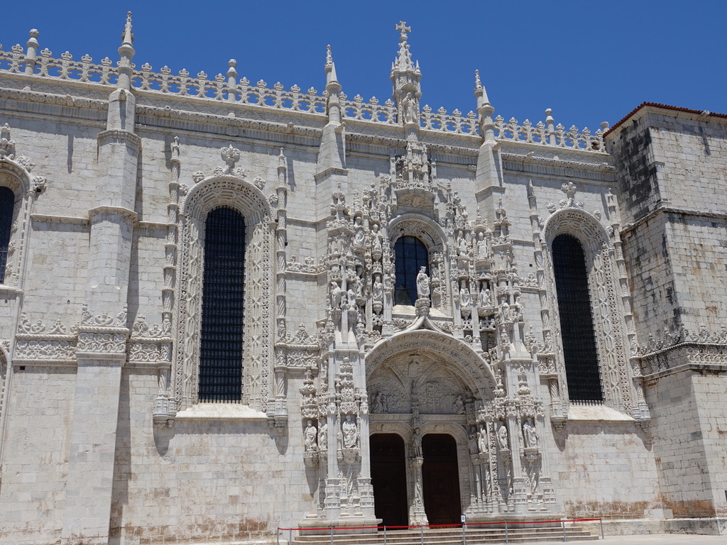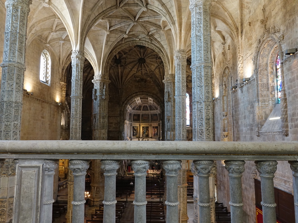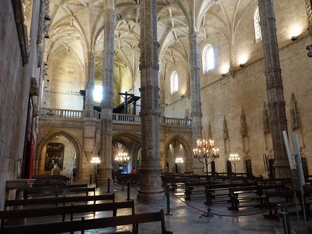 L’accès à l’église attenante, Santa Maria de Belém, est libre. Je l’ai trouvée très belle, avec son entrée basse et sombre, puis ses colonnes massives qui s’envolent vers la voute. La vue depuis le balcon du choeur, réservé aux moines, est superbe. Le portail sud est très ouvragé, c’est de la dentelle de pierre.