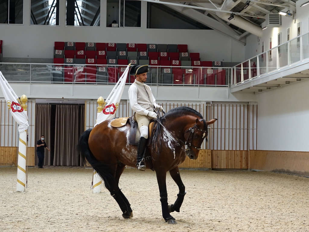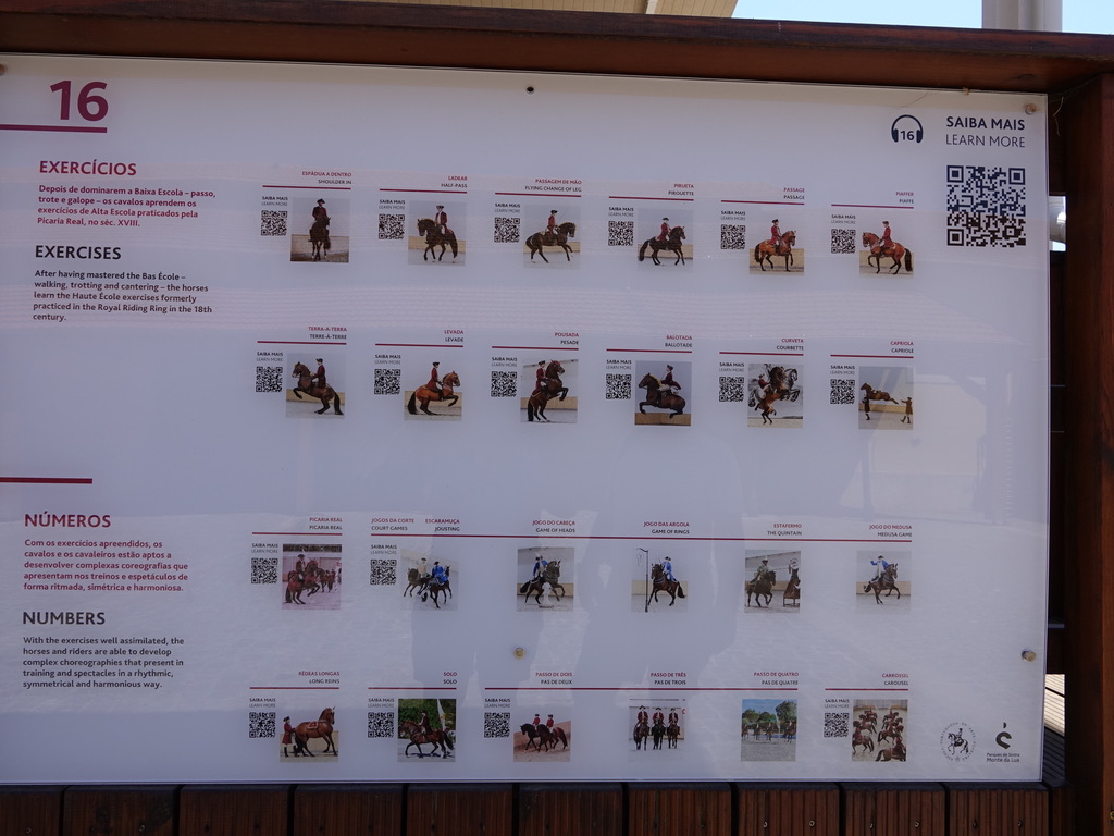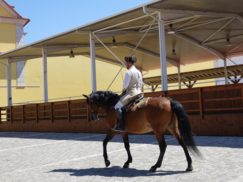 Nous hésitions à visiter le musée des carrosses quand j’ai vu une affiche annonçant la possibilité d’assister à l’entraînement des écuyers de l’Escola Potuguesa de Arte Equestre. Nous avons foncé et passé une bonne heure à observer le travail des cavaliers et de leurs chevaux de race lusitanienne, après avoir visité les écuries. (Tarif :12€ en loge – au niveau du manège)