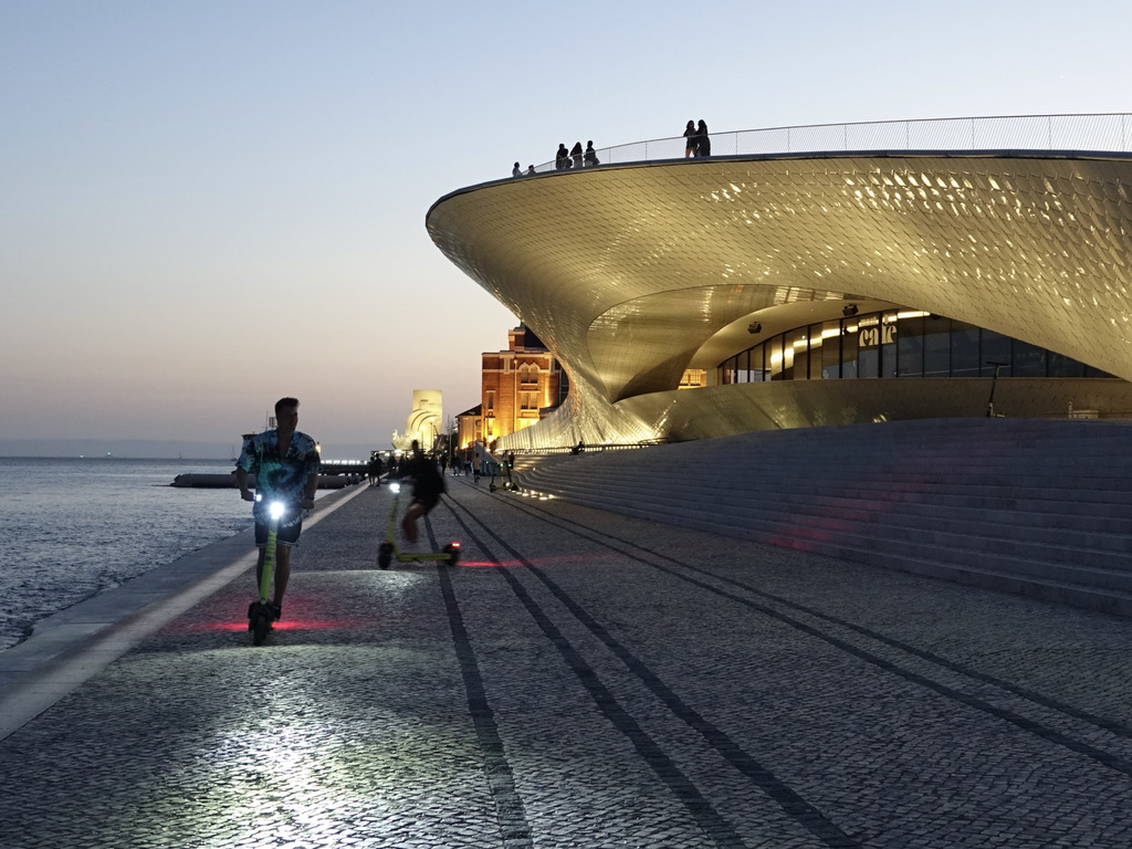La promenade en bord de rivière permet de visiter la Torre de Belém et le Padrão dos Descobrimentos, de croiser les locaux en balade, de regarder passer les bateaux. Ici, pas de voitures, juste des trottinettes pas encore trop envahissantes. Elle est agréable de jour comme de nuit.