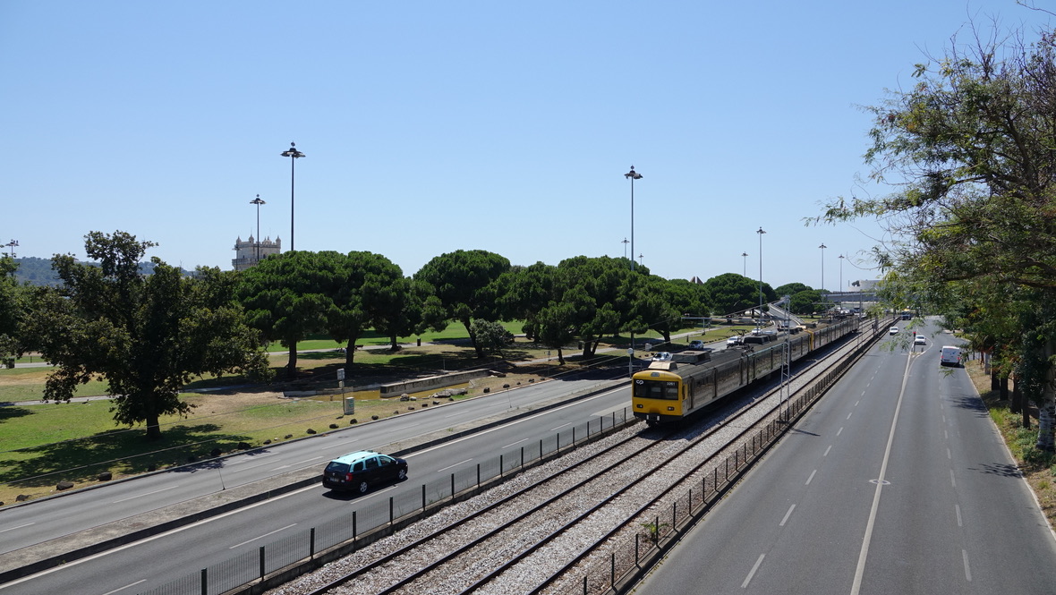 Après notre installation à l’hôtel et un long moment de détente à la piscine, nous prenons la direction du Tage. La question que se pose tout nouvel arrivant à Belém, c’est comment faire pour traverser la voie de chemin de fer et la 2 x 2 voies ? Facile pour nous, il y a une passerelle juste devant notre hôtel, qui nous conduit directement à la Torre de Belém. Nous découvrirons par la suite un passage souterrain entre le monastère et le monument des découvertes, et enfin une passerelle à la gare !