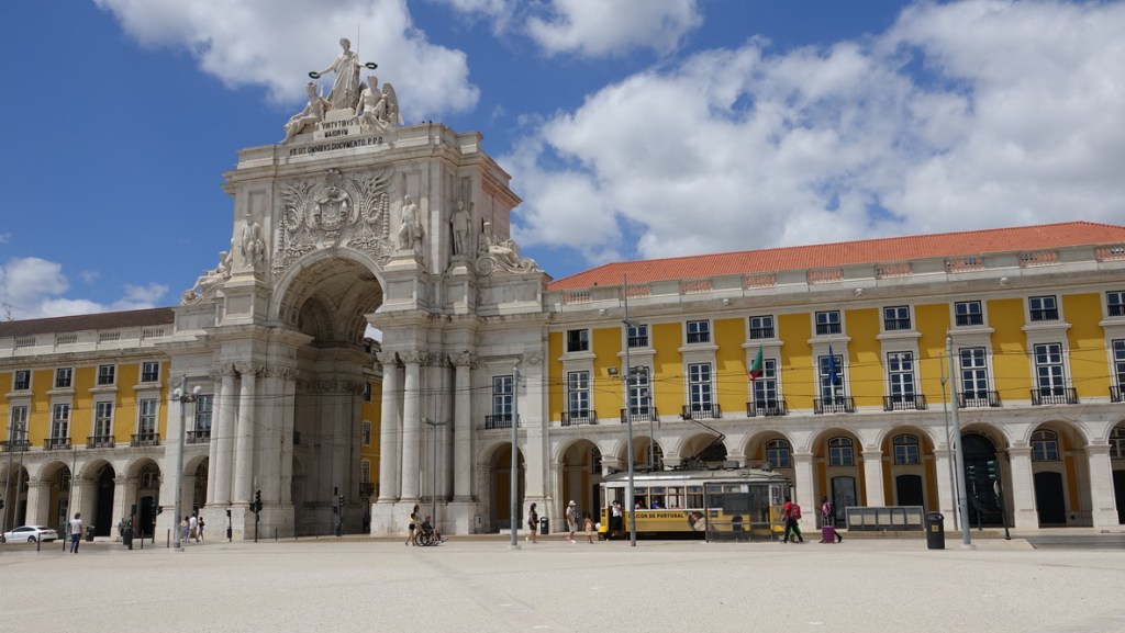 Notre première promenade nous mène à travers le quartier commerçant de Baixa jusqu’à la place du commerce.