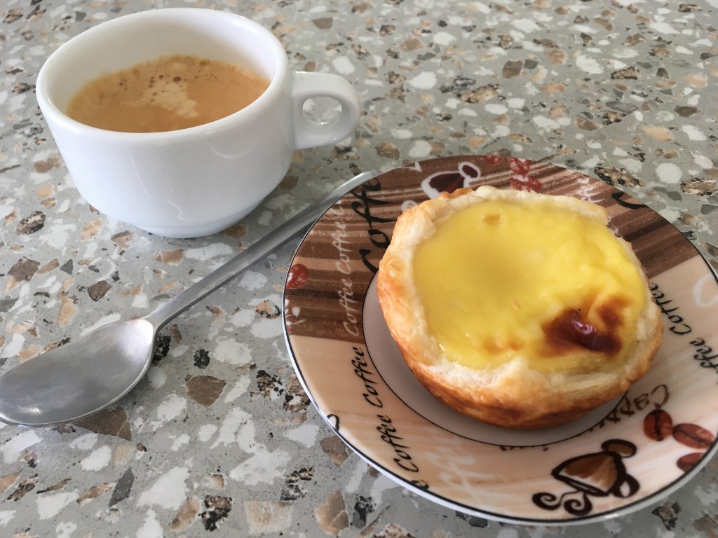 Nous avons choisi de déguster notre pastel avec un café, assis confortablement dans une des nombreuses salles qui se cachent derrière la belle façade bleue. Si l’ajout de sucre sur le pastel est tout à fait superflu, un léger voile de cannelle sublime cette petite bouchée !