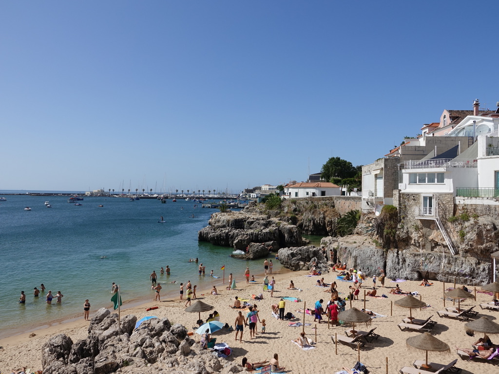 L’accès est facile en train, par la Linha de Cascais. Nous avons juste galéré pour prendre nos billets au distributeur, on ne voyait rien à l’écran, la machine ne lisait pas nos cartes de transport, n’acceptait plus la carte bancaire… les locaux étaient dans la même galère avec les enfants qui trépignaient et la grosse glacière à trimballer.