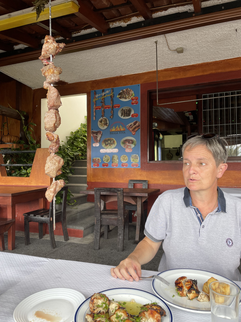 Churrascaria Brasa Viva à São Vicente : un petit resto au bord de la route qui ne paye pas de mine mais les deux frères aux manettes maîtrisent leur barbecue et la cuisson des brochettes de boeuf comme de poulet à la perfection.