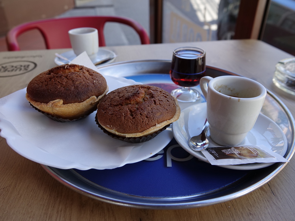 2 gâteaux de châtaigne, 2 cafés et une ginja pour 5€ à la Padaria Pastellaria.