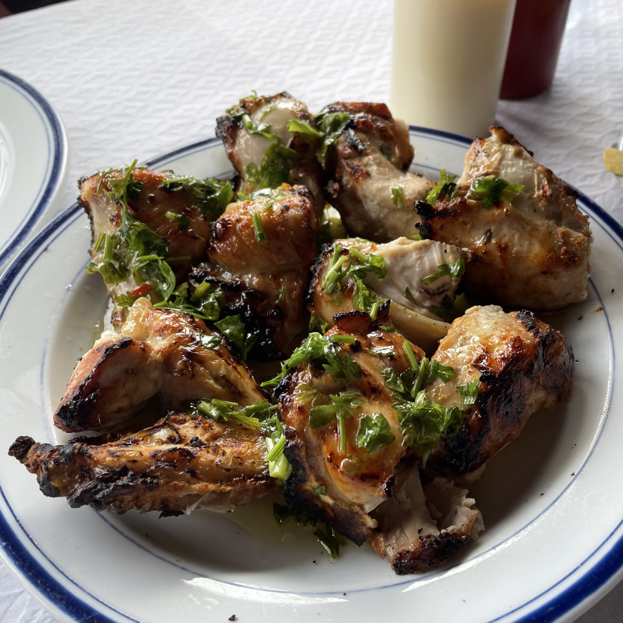 J’ai particulièrement apprécié un plat tout simple, les patelles grillées, accommodées de la fameuse sauce ail et persil. Curieusement, le goût iodé des coquillages n’est pas masqué du tout. Et le bolo do caco est parfait pour saucer !