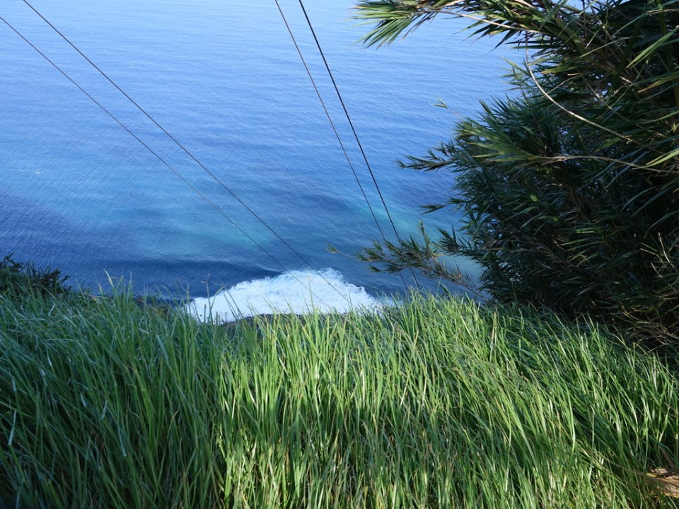 Rocha do Navio tient son nom d’un navire naufragé au XIXème siècle. Le téléphérique (5€ l’aller-retour) permet d’observer plusieurs cascades qui dévalent la falaise. Le site est moins léché que Fajã dos Padres, moins touristique aussi. Il n’y a de la place que pour quelques voitures. Ici, pas de restaurant mais des petites parcelles de vignes et bananes, des légumes aussi. Le hameau constitué de quelques maisons et une casa típica n’a l’électricité que depuis 2008 !