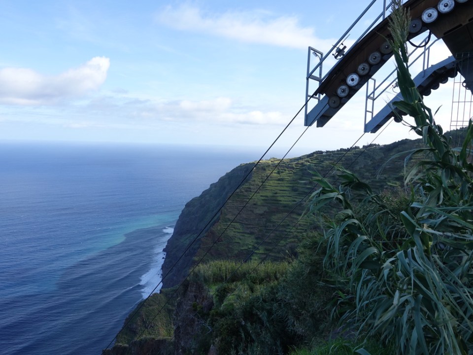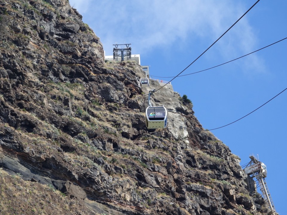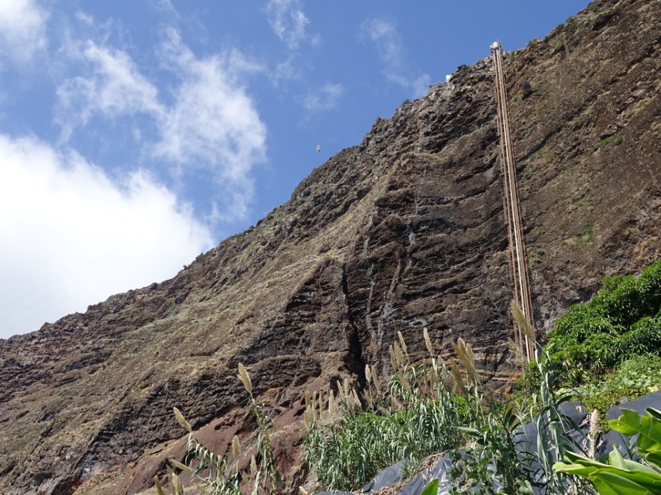 Les téléphériques m’impressionnent toujours. Surtout quand le panorama est vertigineux comme à Achadas da Cruz, sur la commune de Porto Moniz. Nous n’avons pas eu de chance car le Cable Car (6€ l’aller-retour) était fermé lors de notre passage. Les conditions de vent étaient dantesques. J’ignore si j’aurais osé embarquer pour cette descente verticale de 450 mètres ? Nous avions prévu une courte promenade de 40 minutes sur la Fajã Quebrada Nova, ce sera pour une prochaine fois…