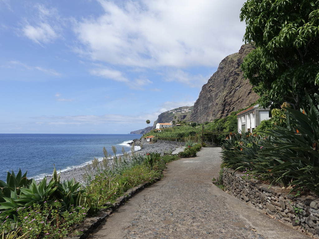 A Madère, il y a bien des terres cultivables sur quelques plateaux mais les plus fertiles se trouvent en bord de mer, au pied de hautes falaises. Ces « fajãs » sont des terrasses constituées d’éboulis que les hommes ont transformé en jardins d’Eden, tout autour de l’île. Nous en avons découvert plusieurs et avons pris beaucoup de plaisir à y lézarder après nos matinées en montagne.
