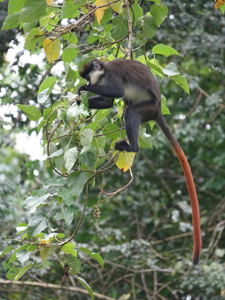 L’animation par les colobes à queue rouge (Cercopitecus ascanius schmidti) est comprise dans le menu !