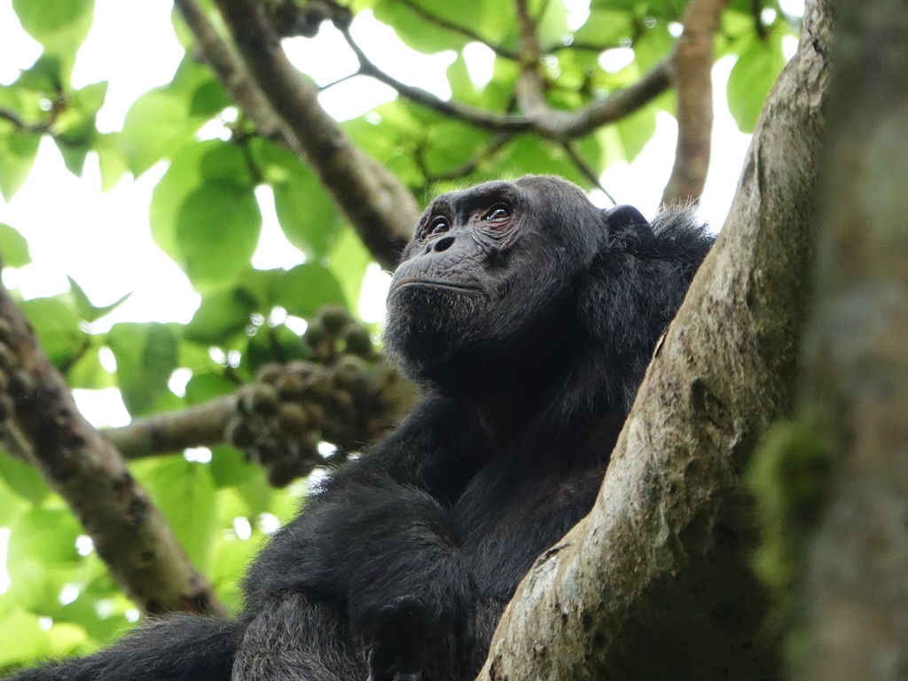 Les Rangers de l’Uganda Wildlife Authority sont très compétents, ils ont suivi une formation particulière, en collaboration avec l’Institut Jane Goodall. C’est en observant les indices laissés par nos proches cousins, en écoutant leurs cris que les rangers arrivent à localiser un groupe tout en haut d’un figuier.