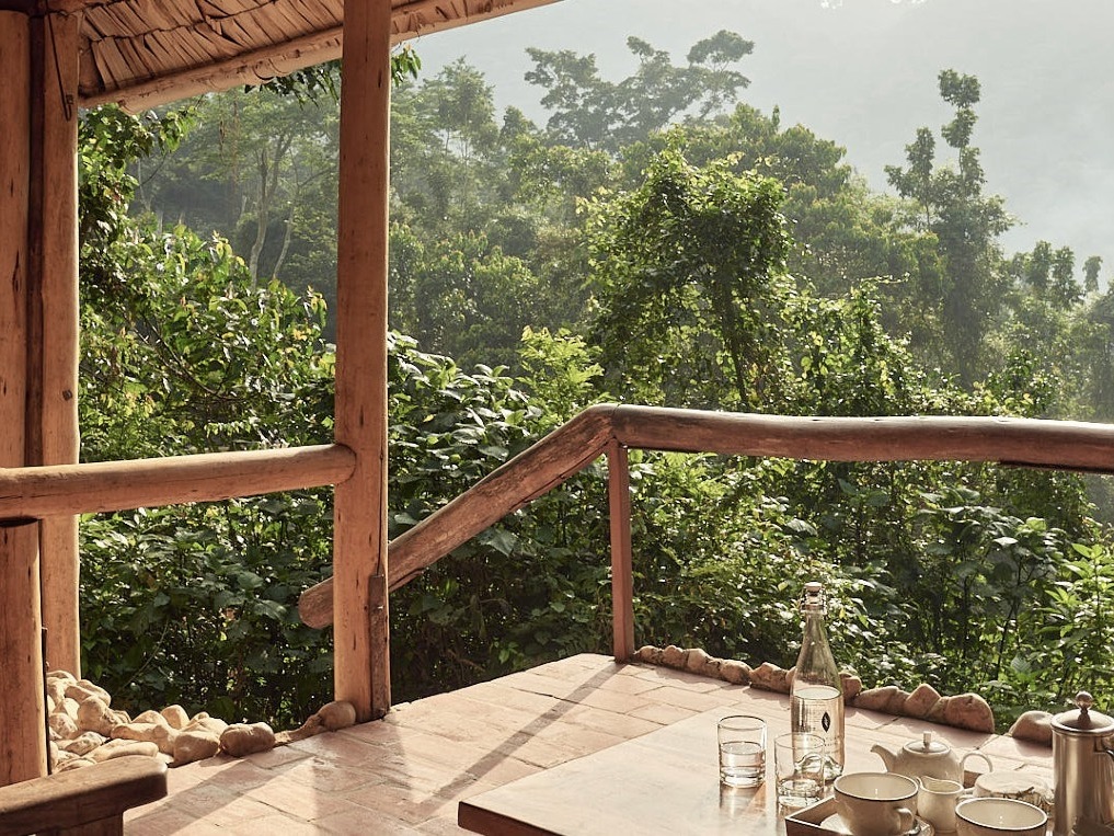 Le lodge est installé à flanc de montagne. Pour accéder au bâtiment principal, il faut monter un escalier de 96 marches. Si on y arrive, on arrivera à grimper jusqu’aux gorilles parait-il !