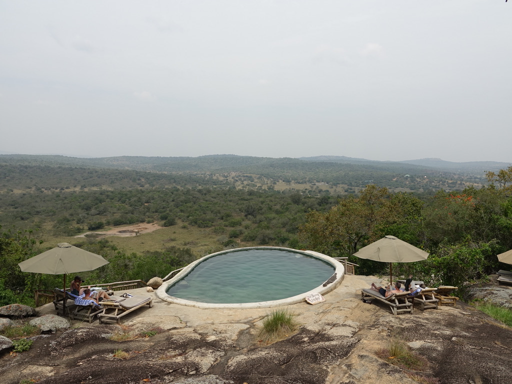 La piscine à débordement surplombe le point d’eau ! Nous en avons bien profité en arrivant de Bwindi.