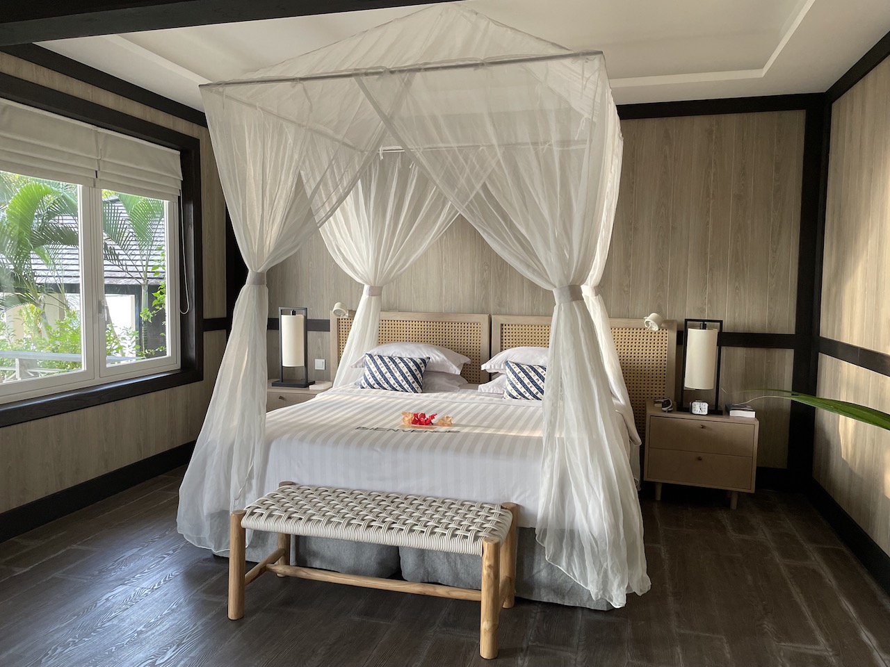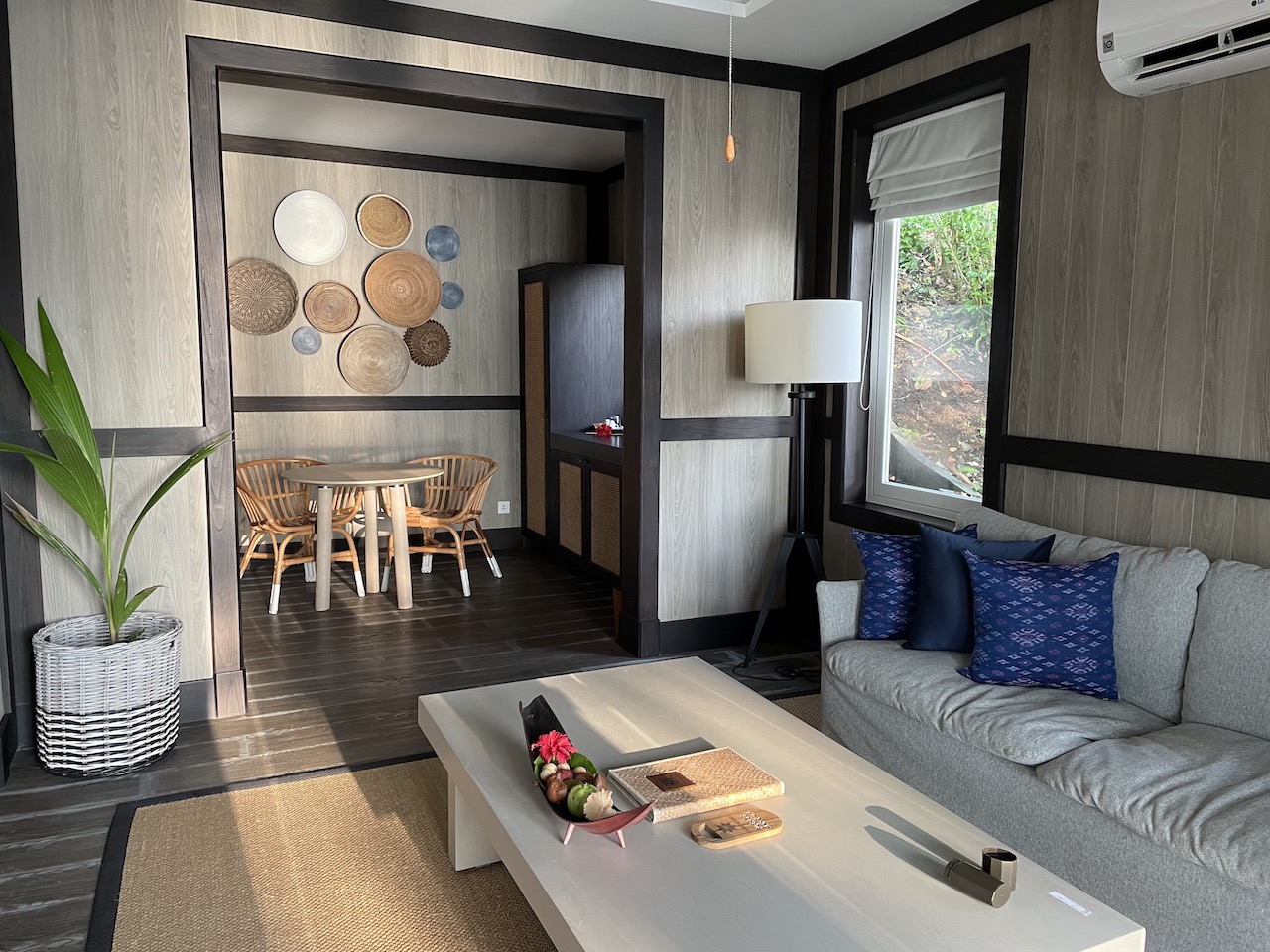 Nous séjournons 9 nuits dans le Premium Luxury Cottage n°2, à flanc de colline. La décoration est sobre et agréable. La salle d’eau, semi-extérieure, est confortable. Un mini bar et un distributeur d’eau froide et chaude sont à disposition, ainsi que du thé et du café. Vous aurez le choix entre climatisation et ventilateur.