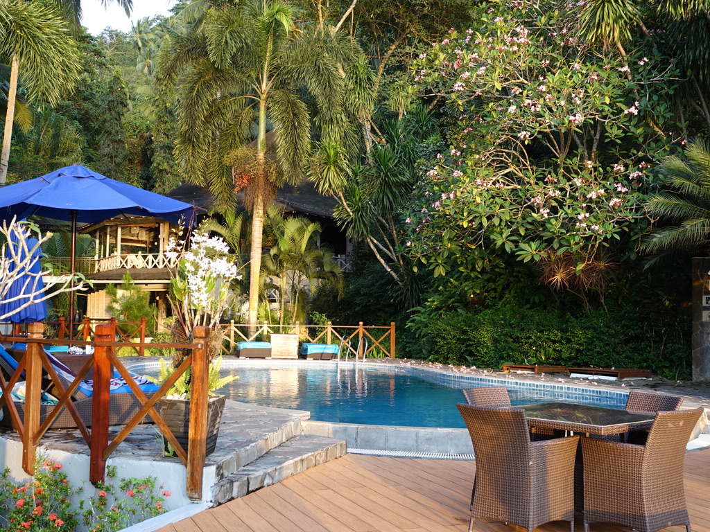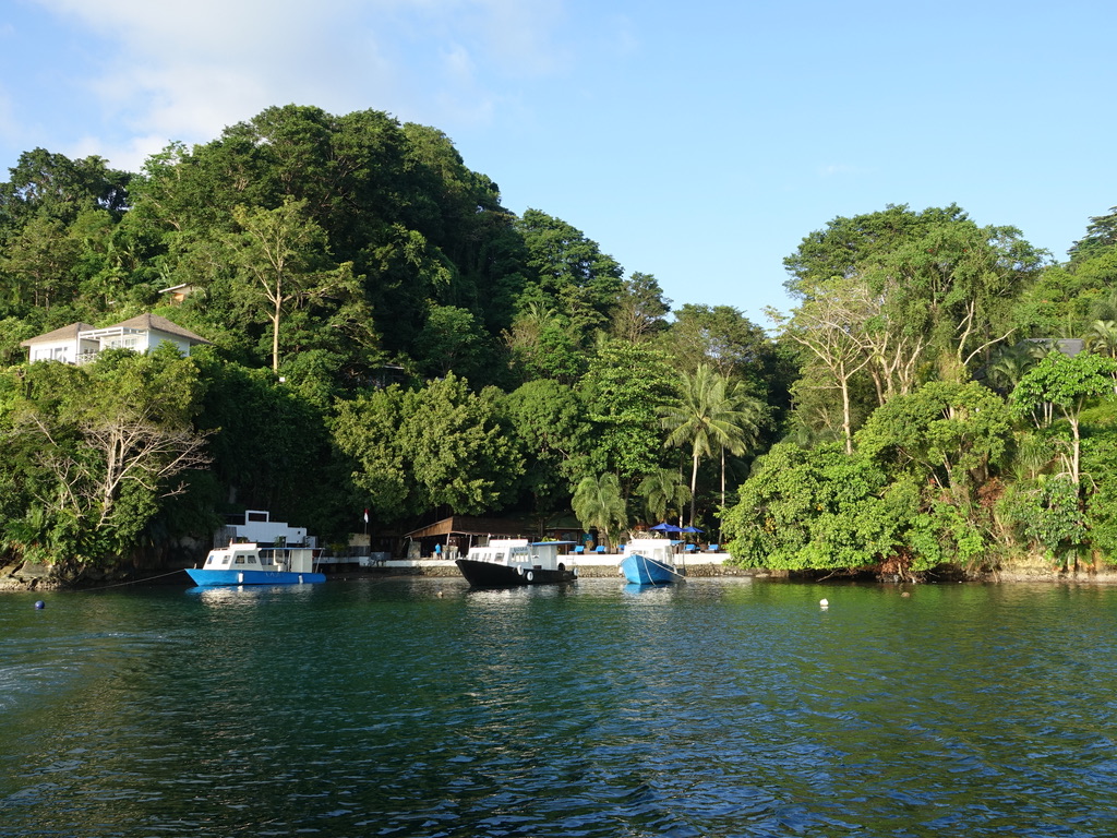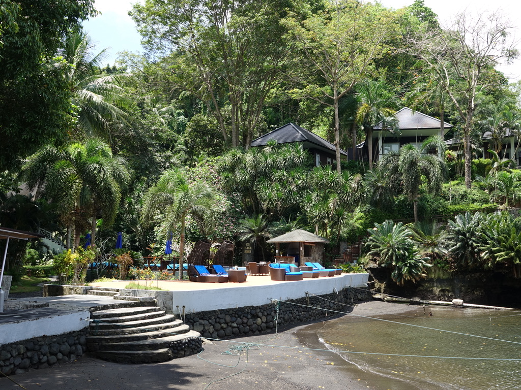 Le Lembeh Resort est situé sur l’île du même nom, en bordure du détroit de Lembeh. C’est ce que l’on appelle un boutique hôtel, peu de chambres et un service impeccable. On y accède par bateau uniquement. L’endroit est calme, seulement troublé par les bruits de la nature… et les bateaux de plongée 😉