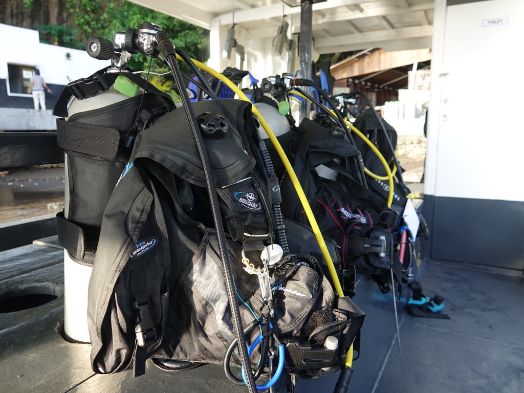 A l’exception de la combinaison et des chaussons, le matériel est entièrement géré par le staff, selon les préférences du plongeur.