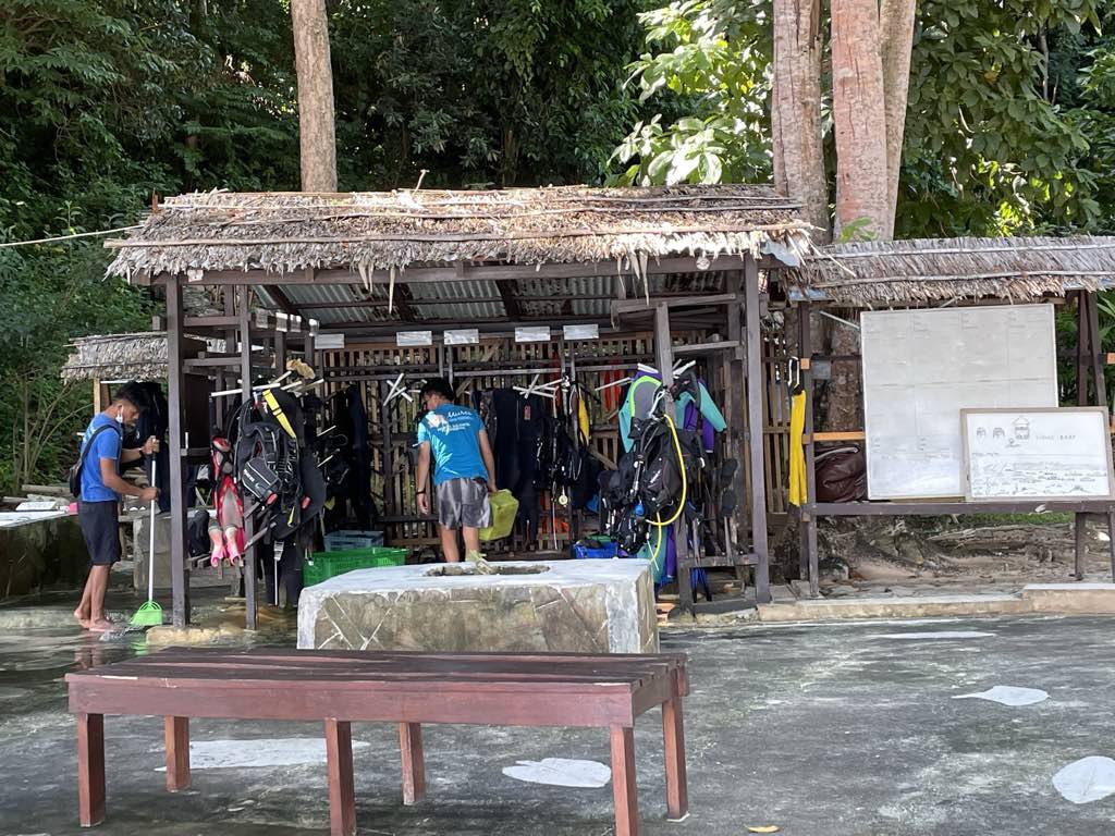 Le dive center est une toute petite paillote, avec ce qu’il faut : rangements, bacs. Un bâtiment est en construction, qui accueillera aussi une caméra room moderne.