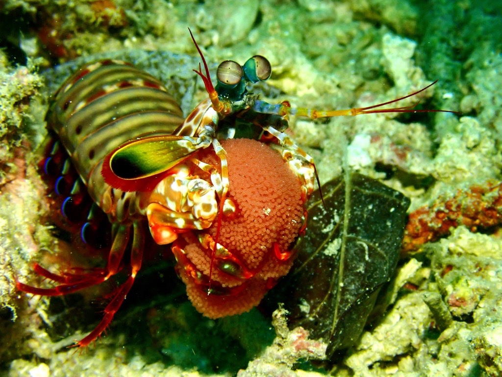 Tous les deux sont enthousiastes, surtout quand on tombe sur une crevette mantis, portant ses œufs, à l’extérieur de son trou (ce qui est rare).