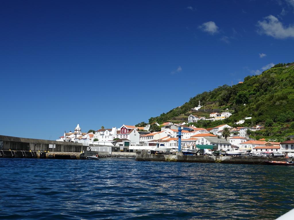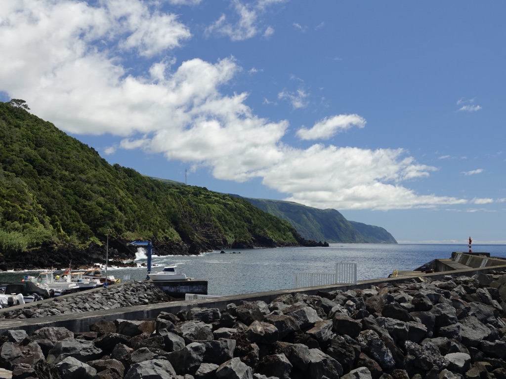 Arrivée à Calheta, nous déjeunons sur le port dans un petit restaurant traditionnel. La baignade dans ce petit port isolé est rafraichissante avant de reprendre la mer sous un soleil intense.