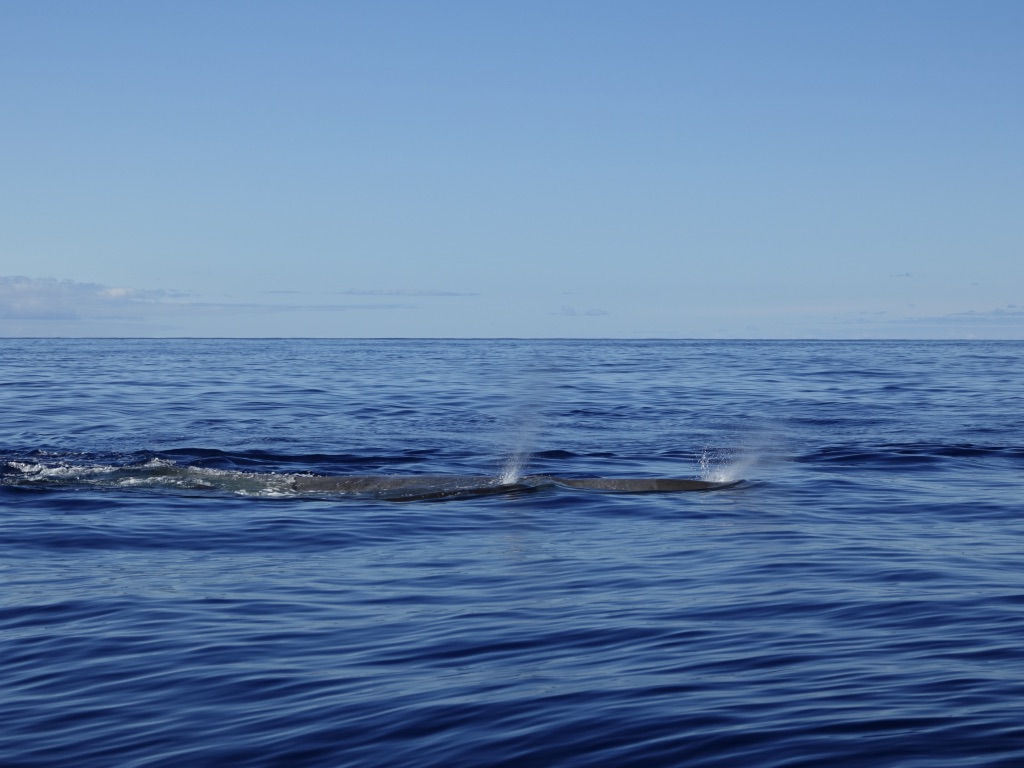 Un souffle à la verticale indique la présence d’un rorqual boréal, la troisième plus grande baleine.
