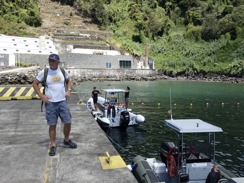Rendez-vous à 9 heures pour les 11 participants à ce « full day » entre Pico et São Jorge. Briefing à propos des cétacés mais aussi des oiseaux, tortues, requins, méduses que nous pouvons croiser, prise de la commande pour le repas de midi, distribution des gilets de sauvetage et c’est parti avec Yvan à la barre et Lynn aux commentaires.