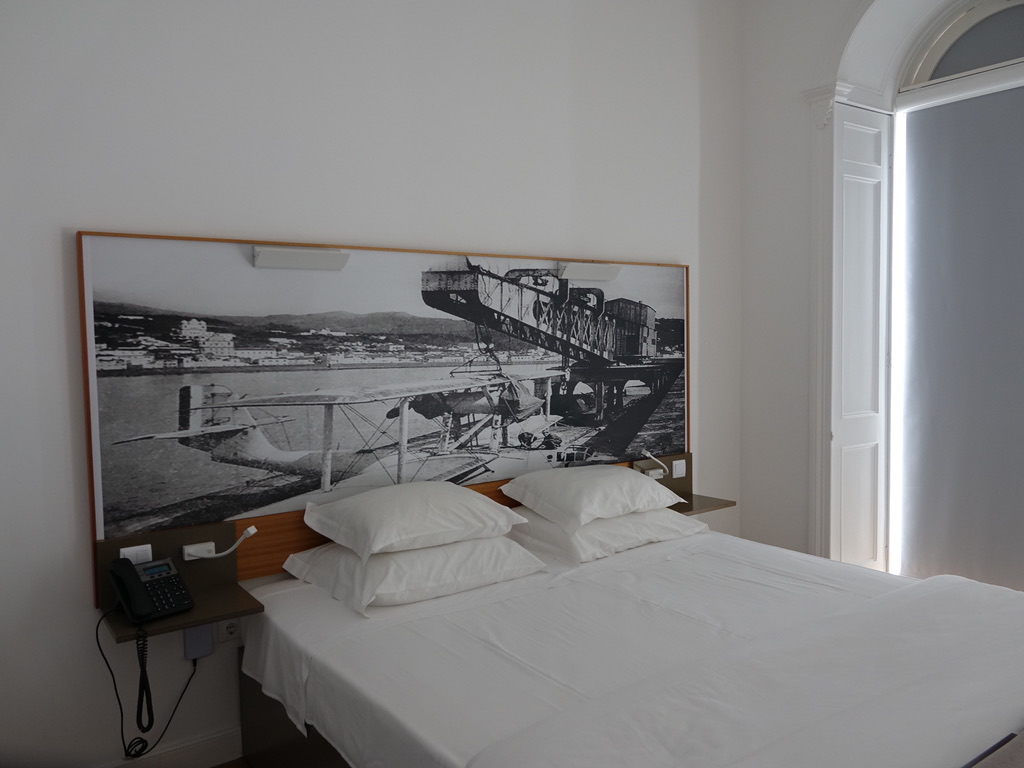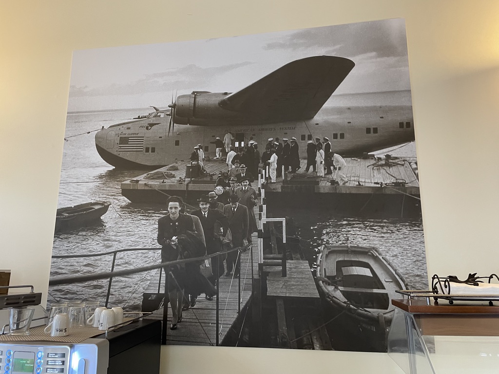 La décoration sur le thème de l’histoire de l’aviation du début du XXème siècle est très graphique. Elle met en lumière les pionniers de l’époque où les hydravions traversant l’Atlantique Nord faisaient d’Horta une ville cosmopolite.