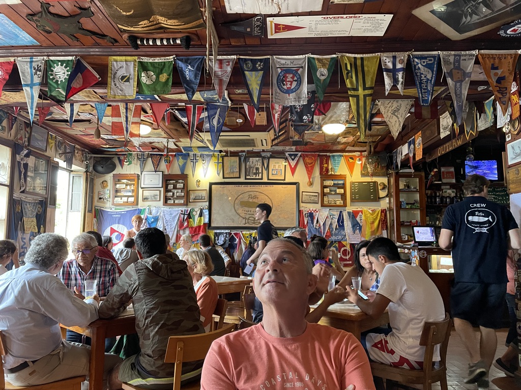 Marins, touristes et locaux se retrouvent au Peter’s Café Sport , membre de la très officieuse liste des 10 meilleurs cafés de marins au monde. Il faut arriver tôt, avoir de la chance ou faire la queue pour avoir une table. L’ambiance est sympathique, la salle est décorée de fanions, il y a des petites annonces de skippers qui cherchent des équipiers.