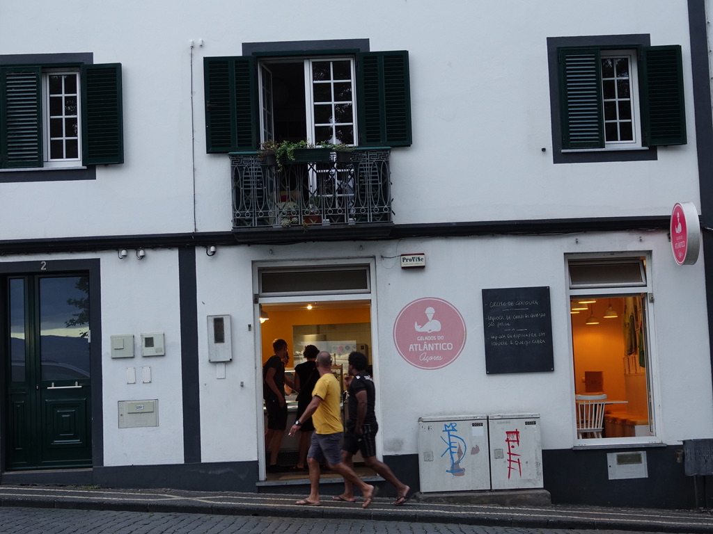 Manger une glace maison à Gelados do Atlantico (1,50€ la boule) : Patrick recommande les parfums ananas, goyave et fruit de la passion. Les fruits sont cultivés aux Açores.