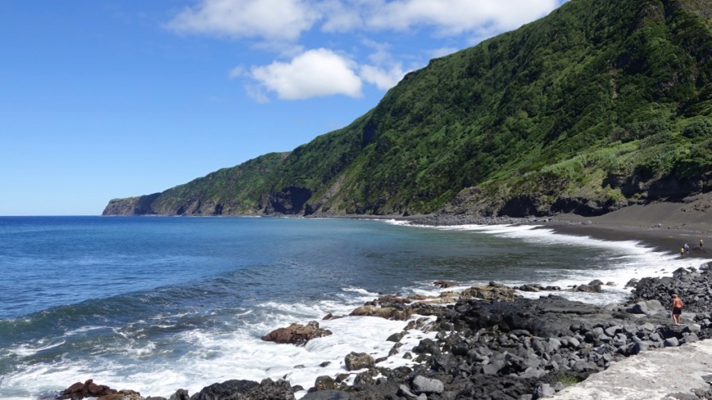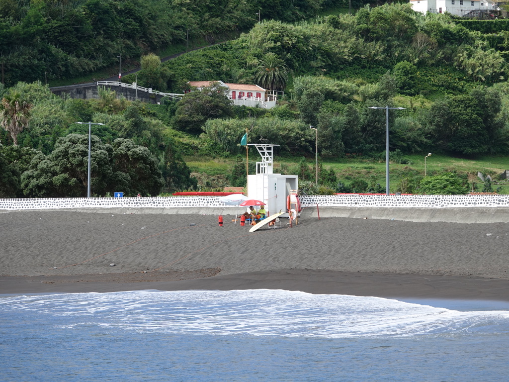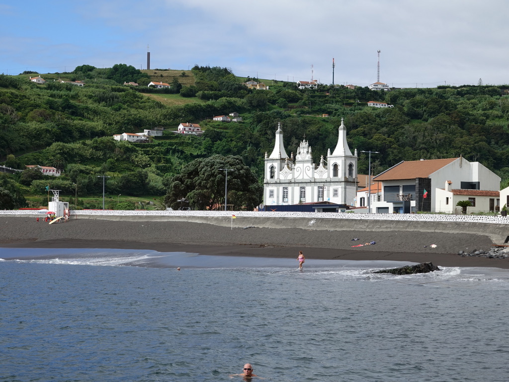 Nous faisons un bref arrêt à Praia Do Almoxarife, la très belle plage de sable volcanique de l’île.