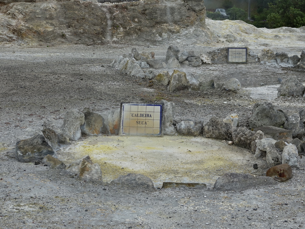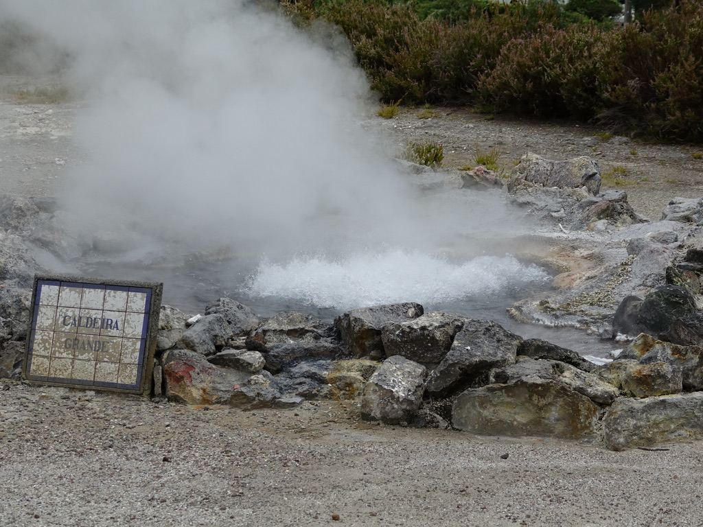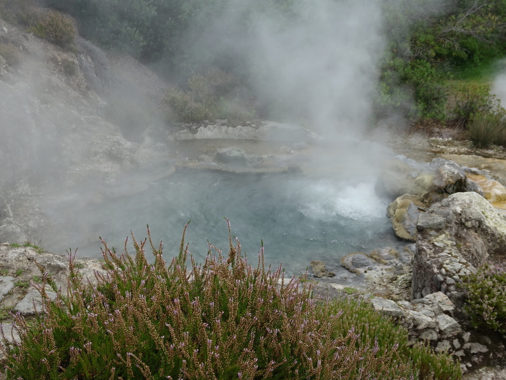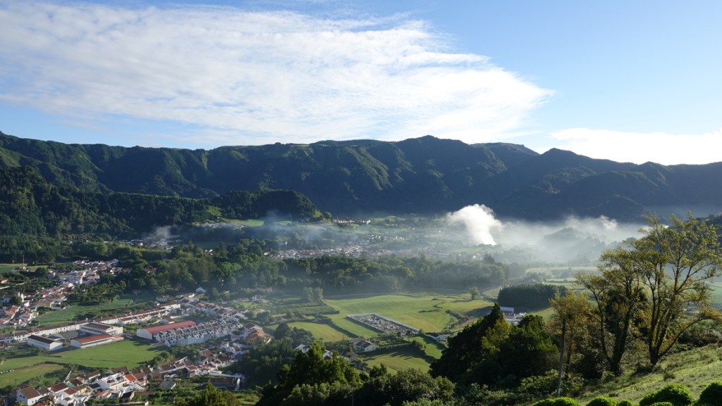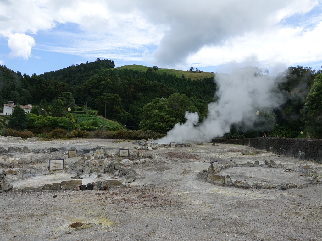 La vapeur des caldeiras das furnas s’élève à deux pas de notre hôtel. Cette zone est en libre accès et l’on peut y observer différents types de caldeira.