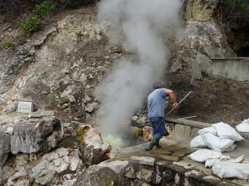 Elles sont aussi utilisées pour cuire des aliments, ici des épis de maïs, dans une moindre mesure par rapport à celles qui se trouvent au bord du lac de Furnas.