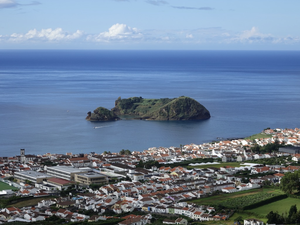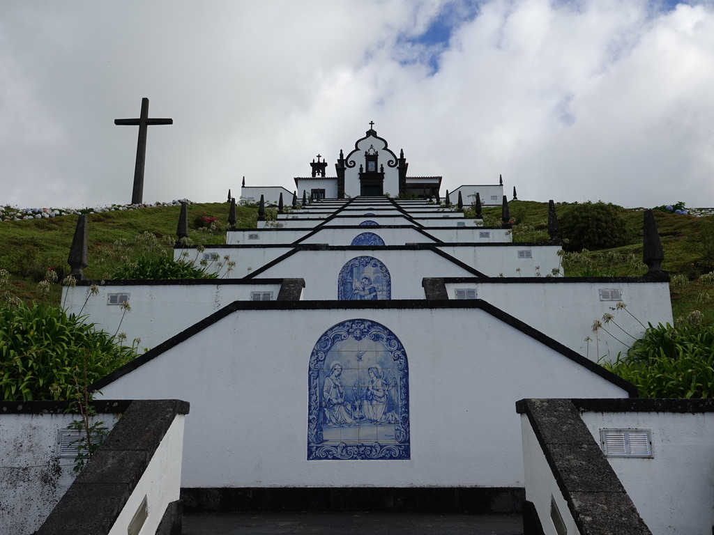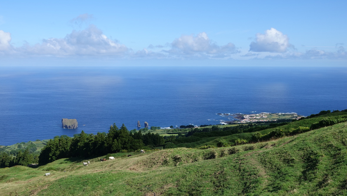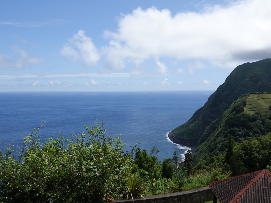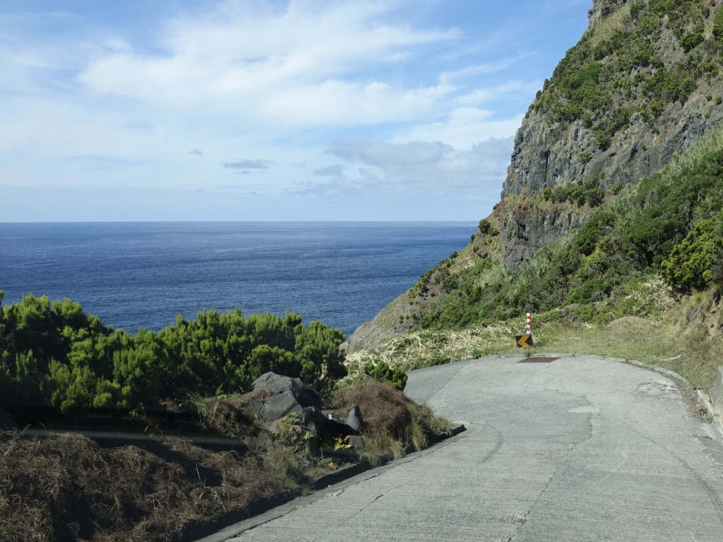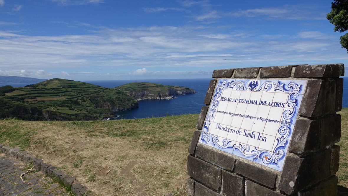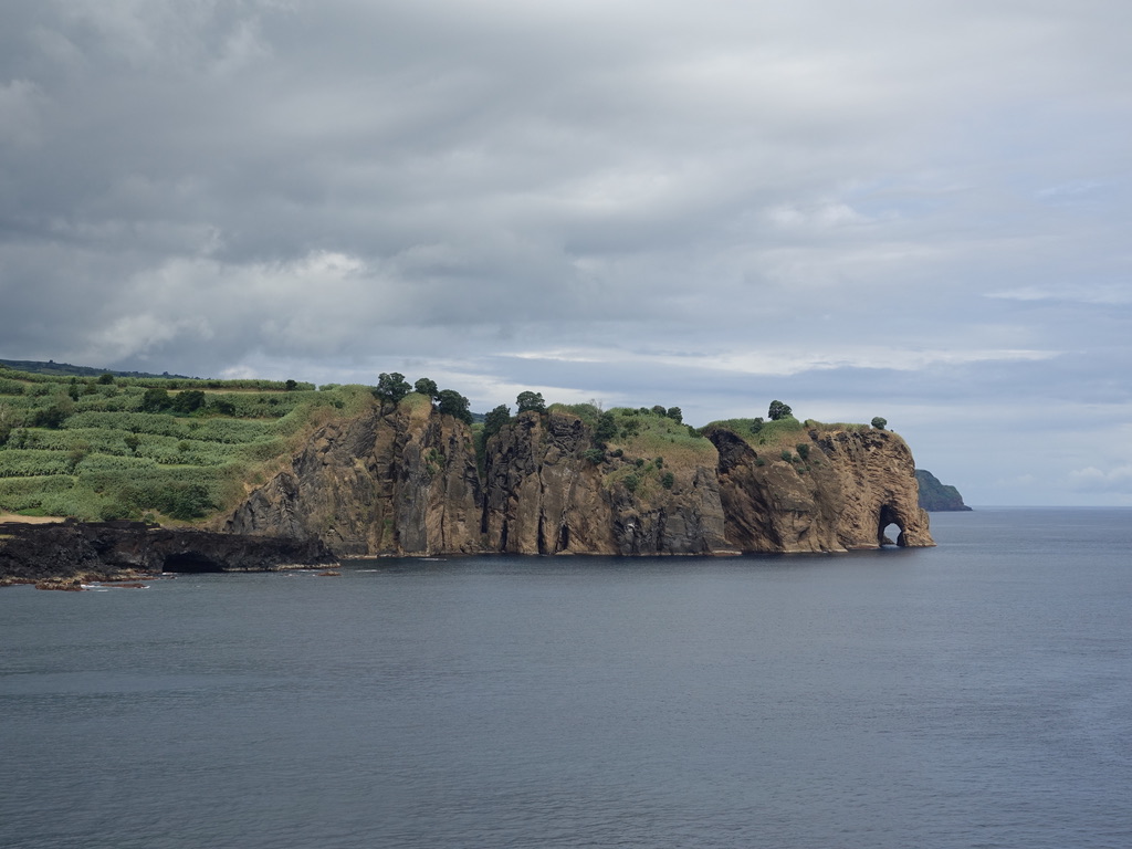 Nous avons suivi la côte sud pour rejoindre Ginetes depuis Furnas, avec un premier arrêt à Vila Franca do Campo. La cité attire pour son îlot incroyable. Nous n’avions pas le temps pour y organiser une excursion. L’Ilheu da Vila est accessible en bateau uniquement de mi-juin à mi-septembre. Le reste de l’année, c’est une réserve naturelle intégrale. Nous avons fait le pélerinage jusqu’à la chapelle de nossa Senhora da Paz pour jouir de cette vue imprenable.