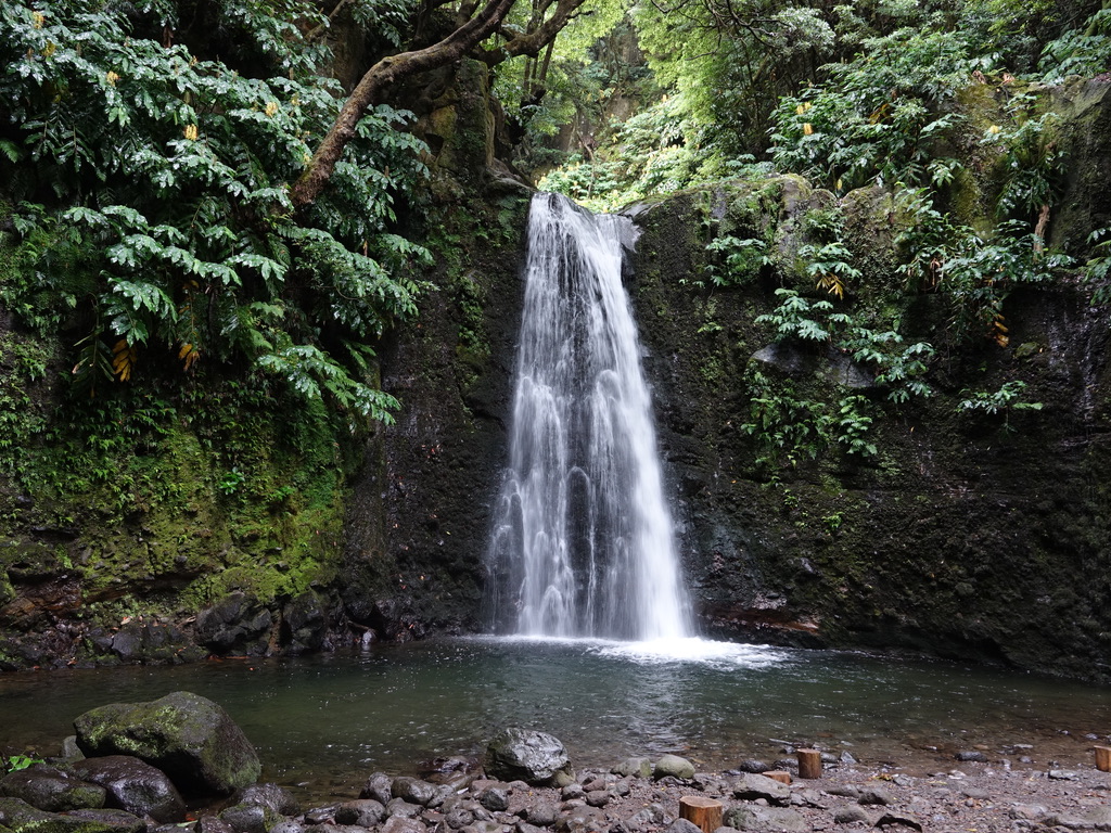 Prochain arrêt au Parque Natural da Ribeira dos Caldeirões à Achada. C’est un parc paysagé, avec des hébergements touristiques, un moulin rénové, une aire de pique-nique (avec barbecues et tables ombragées), un café et … des cascades. Il y a beaucoup de monde sur la première cascade, il suffit de suivre le sentier qui longe la rivière pour se retrouver (presque) seul à la seconde cascade.