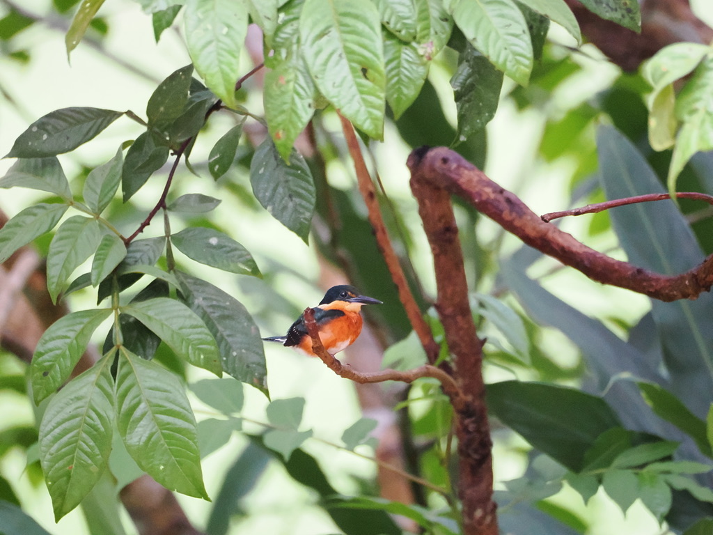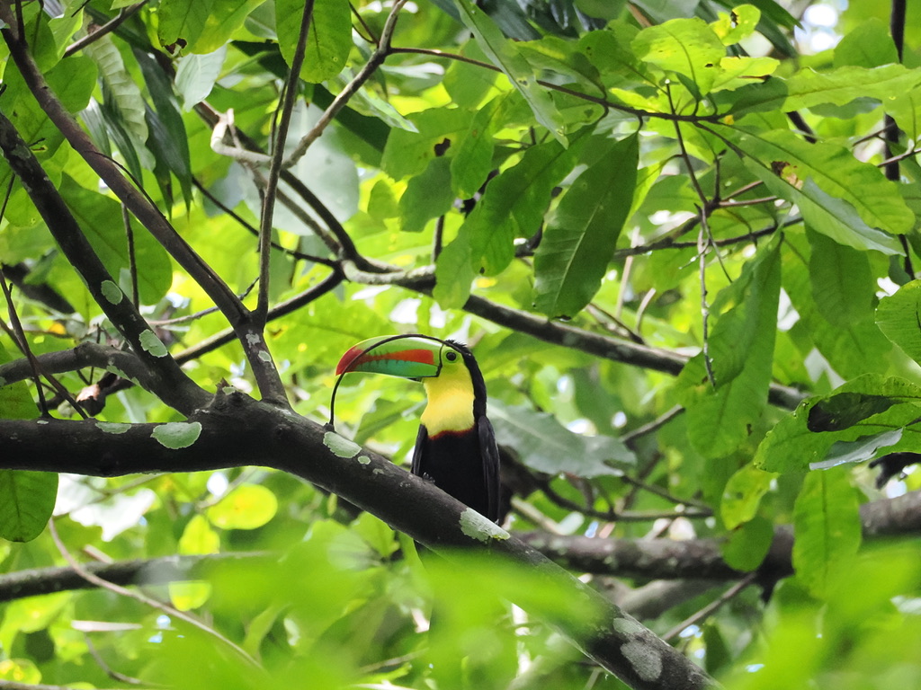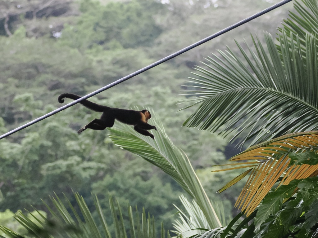 Nous essuyons quelques averses et la lumière est difficile pour les photos mais nous avons vu de nombreuses espèces, et notamment des mammifères – un paresseux, des agoutis et un singe capucin acrobate.