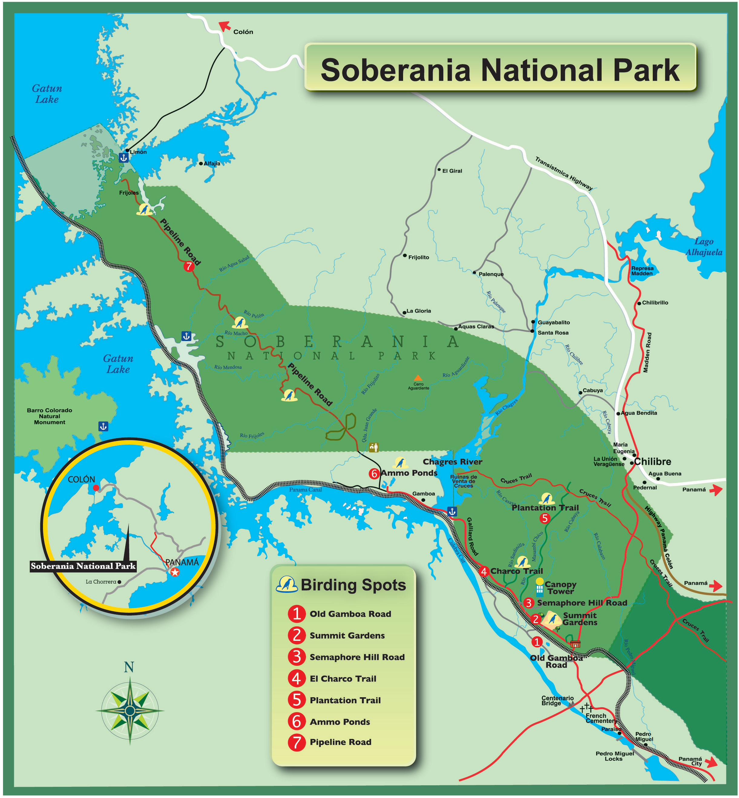Après une semaine dans le Darién, nous prenons nos quartiers à Gamboa, dans le Parc National de Soberanía, à seulement 30 minutes de route de Panama City. Nous sommes dans la partie la plus étroite du pays et les observations ornithologiques se font de part et d’autre de la ligne de partage des eaux, un paradis pour les ornithologues ! La forêt tropicale présente une variété spectaculaire de faune et de flore, avec plus de 100 espèces de mammifères et 70 espèces de reptiles. On y trouve les meilleurs sentiers d’observation ornithologique, dont la célèbre Pipeline Road.