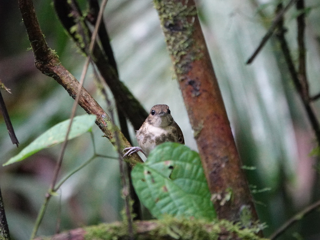 Nous aurons une belle expérience d’approche d’un petit oiseau chanteur, le Streak-chested Antpitta. Jorge l’a entendu, lui a répondu avant de mettre son enceinte en place. Nous avons quitté la route pour marcher tout doucement dans le sous-bois, avant de l’apercevoir à 3 mètres devant nous. Le tout a duré une vingtaine de minutes, notre patience ayant été récompensée.