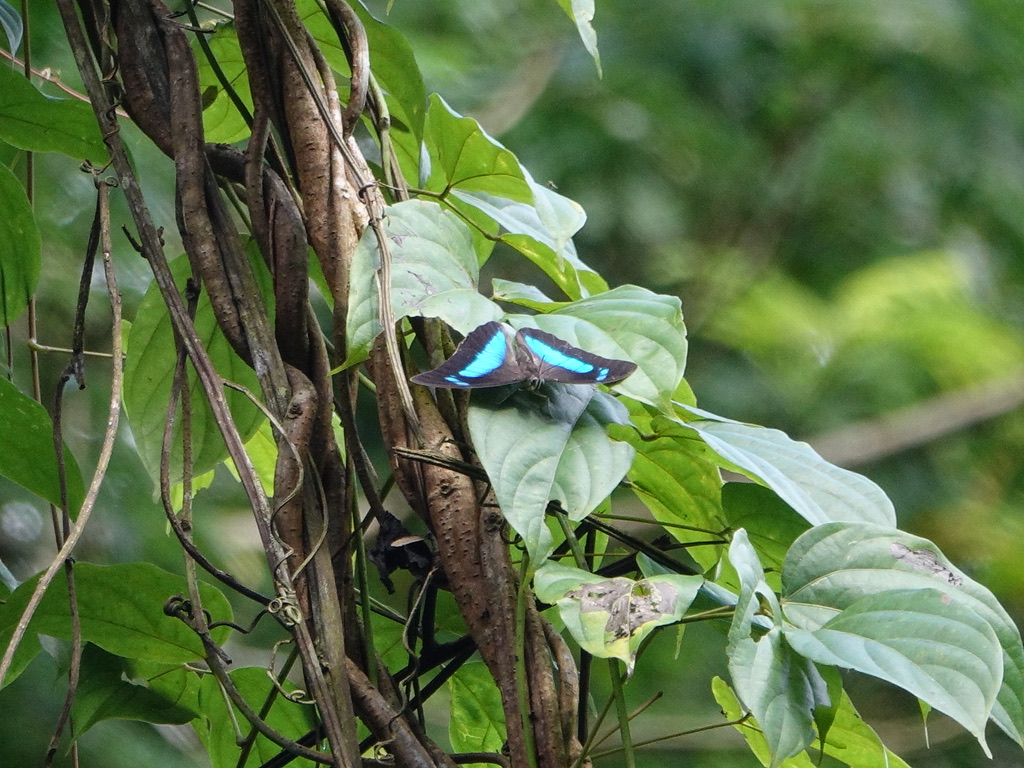 C’est une sortie tranquille car nous sommes seuls avec Danilo. Nous passons du temps pour photographier des papillons ou des grenouilles. Nous avons aussi un joli coup de chance : un Black Eagle-Hawk juvénile nous surveille depuis son nid. Il est déjà grand et nous montre sa capacité de vol.