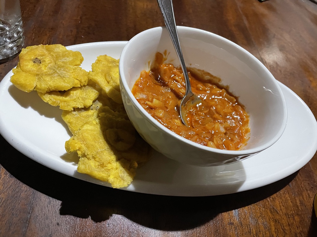 J’ai adoré les Patacones. Ce sont des bananes plantains vertes coupées en rondelles, frites une première fois. Elles sont ensuite écrasées, et frites une seconde fois. Salées et accompagnées d’une sauce tomate, c’est un snack délicieux à l’apéritif !