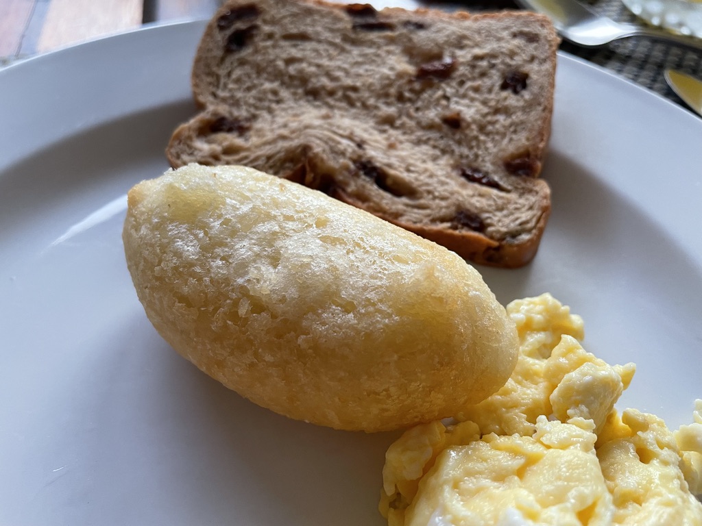 Sur la photo de gauche et à droite, les petits beignets ronds sont les carimañolas. Ces beignets de yuca, fourrés à la viande ou avec de l’oeuf dur, sont consommés au petit-déjeuner.