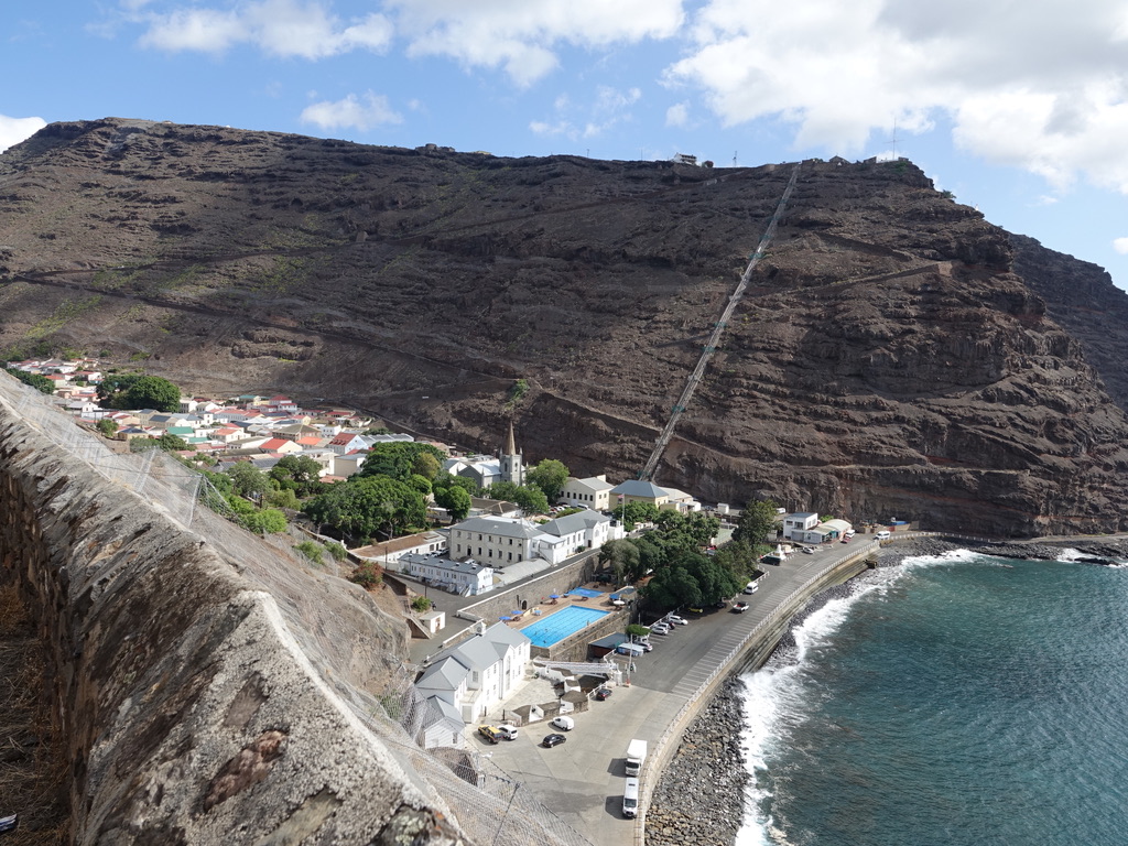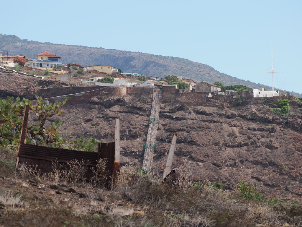 L’Échelle de Jacob est une attraction emblématique de Jamestown, avec ses 699 marches et un angle d’ascension de 40 degrés ! Un funiculaire avait été construit en 1829 pour relier Jamestown, en bas, à Ladder Hill Fort et Half Tree Hollow, en haut de la colline. Les marches sont tout ce qui reste de cet équipement. L’échelle de Jacob était en rénovation lors de notre séjour. J’avoue que je n’étais pas fâchée 😉