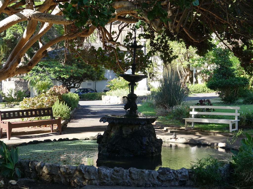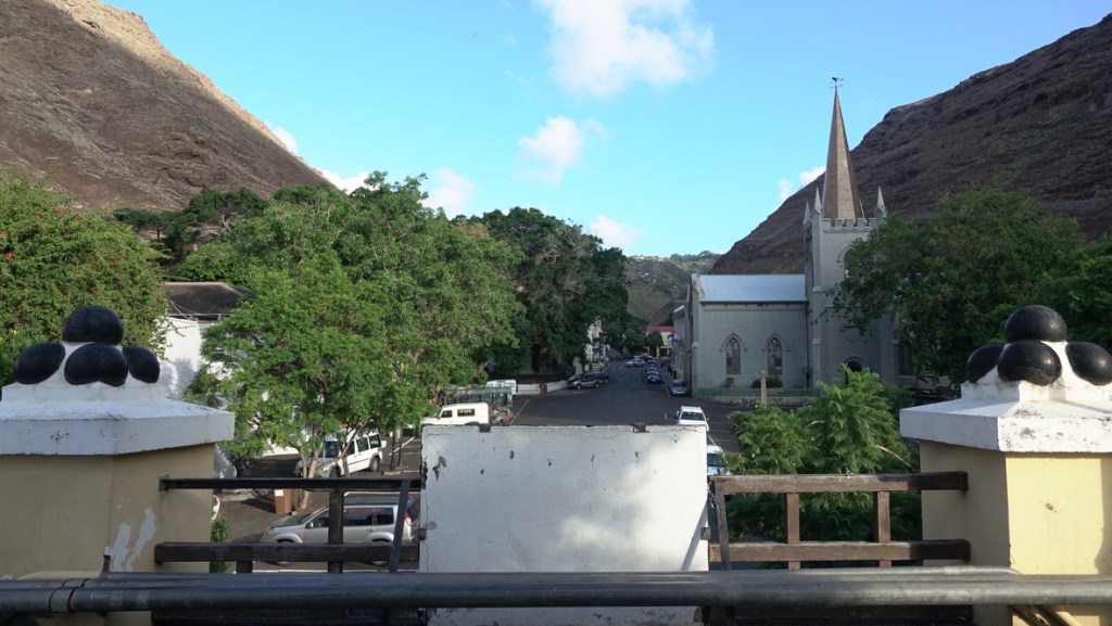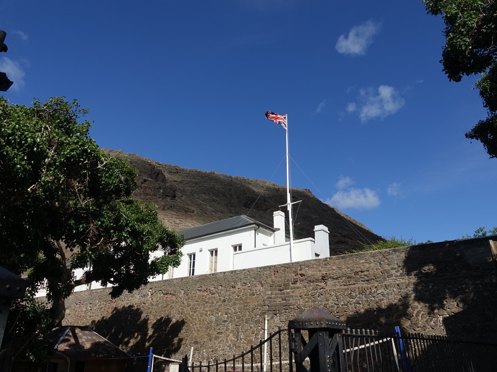 Grand Parade était le terrain d’exercice de la garnison britannique. Aujourd’hui c’est le parking. Le château, la cour de justice, la bibliothèque, l’église anglicane et la prison se trouvent sur cette grande place. Le château abrite le gouvernement du territoire et arbore toujours les armoiries de l’East Indian Company. Notez le Land Rover garé juste devant, il y en a beaucoup sur l’île, so british.